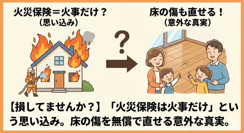 【損してませんか?】「火災保険は火事だけ」という思い込み。床の傷を無償で直せる意外な真実。
